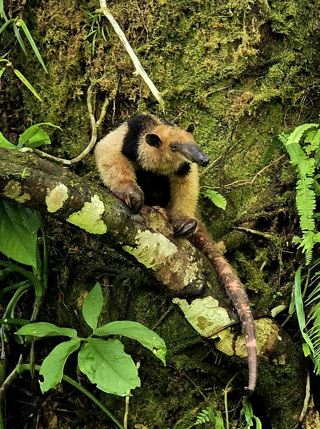 Drive or fly - but if you do drive stop by the Ballena Coast and turn your transfer into a tour. The photo is one of many creatures you may find peering down at you while wandering the jungle paths of the Osa. This lovely anteater was just checking us out quietly in the trees above us as we meandered through the jungle one morning. Not a care in the world.